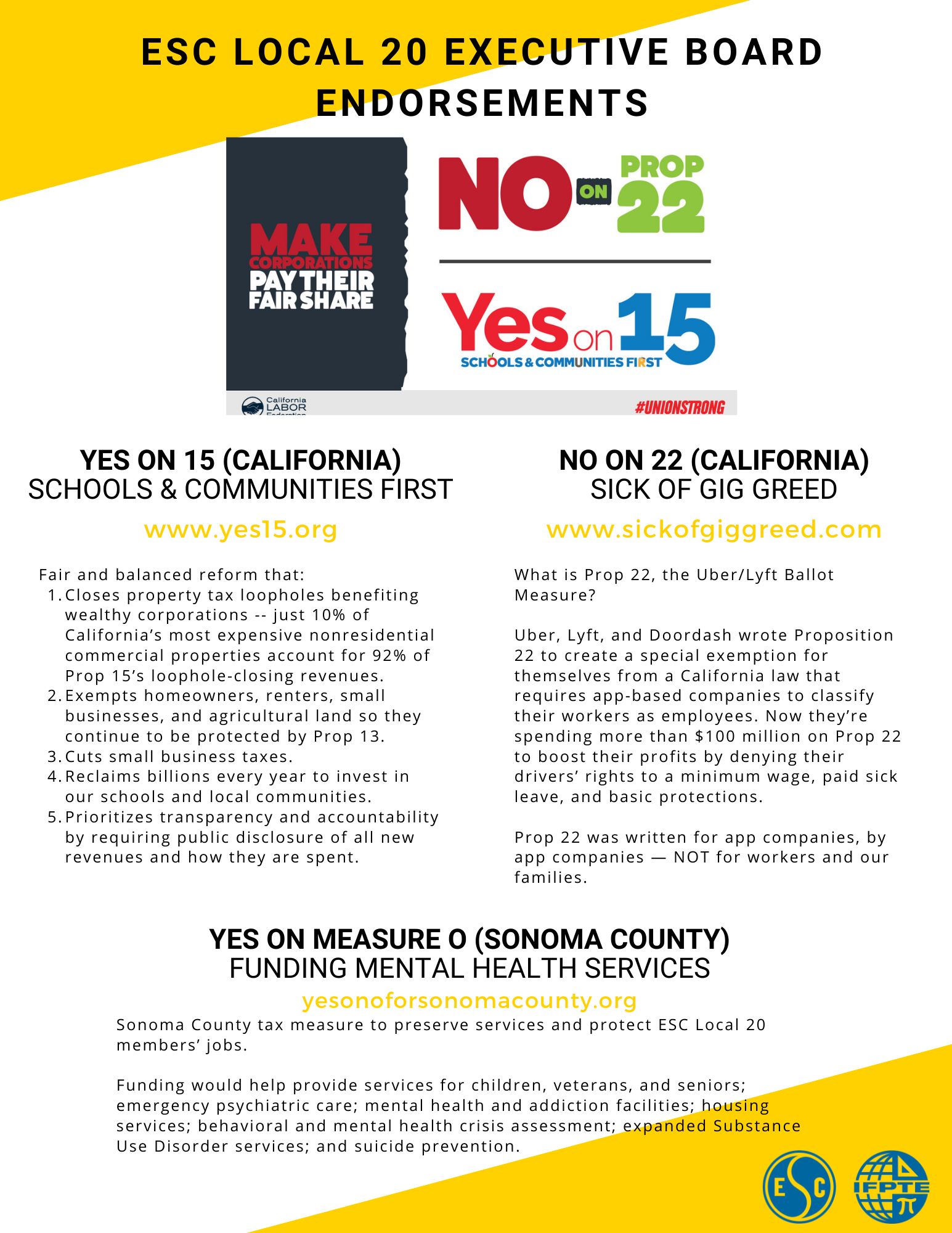 NO on 22 (California), YES on 15 (California), YES on O (Sonoma County)