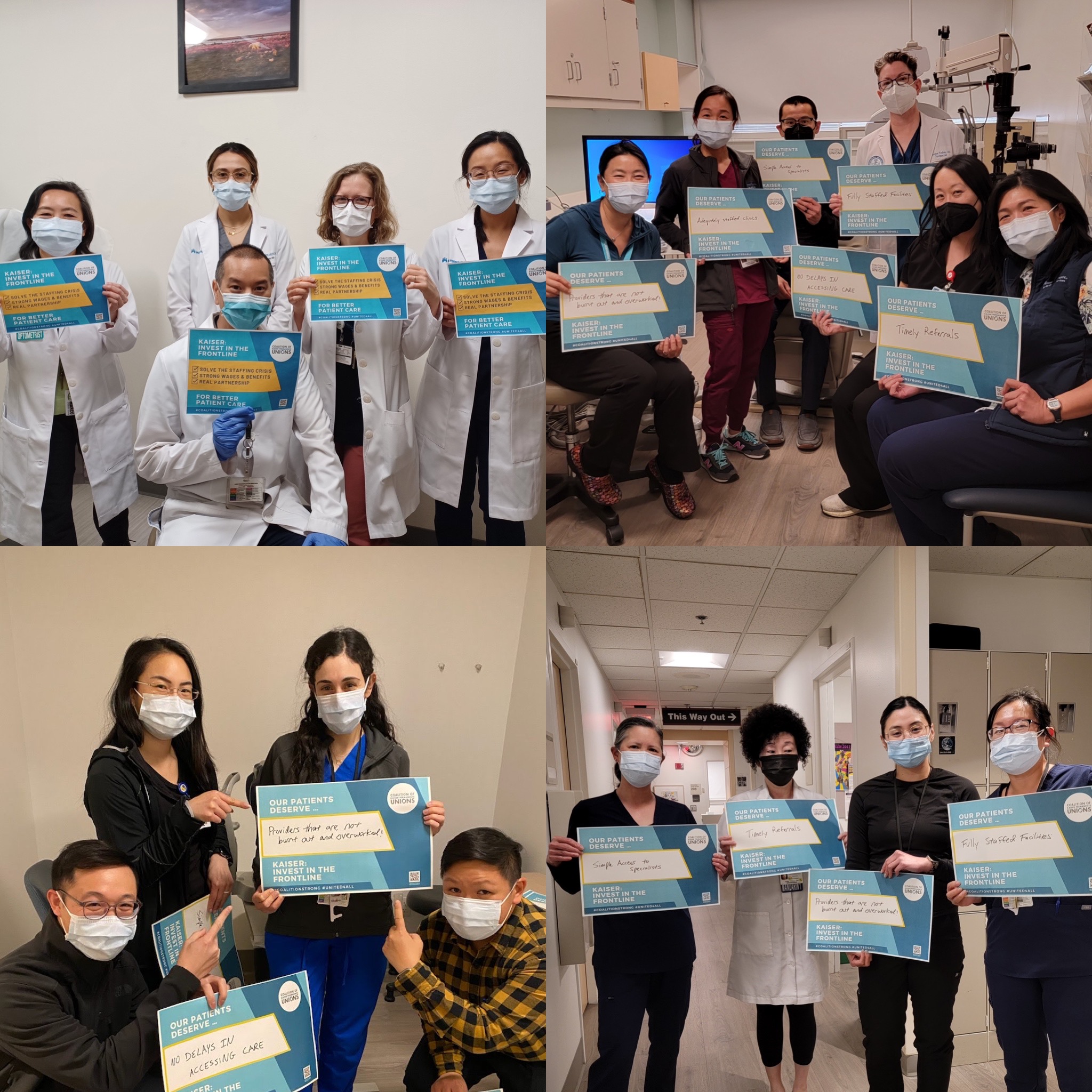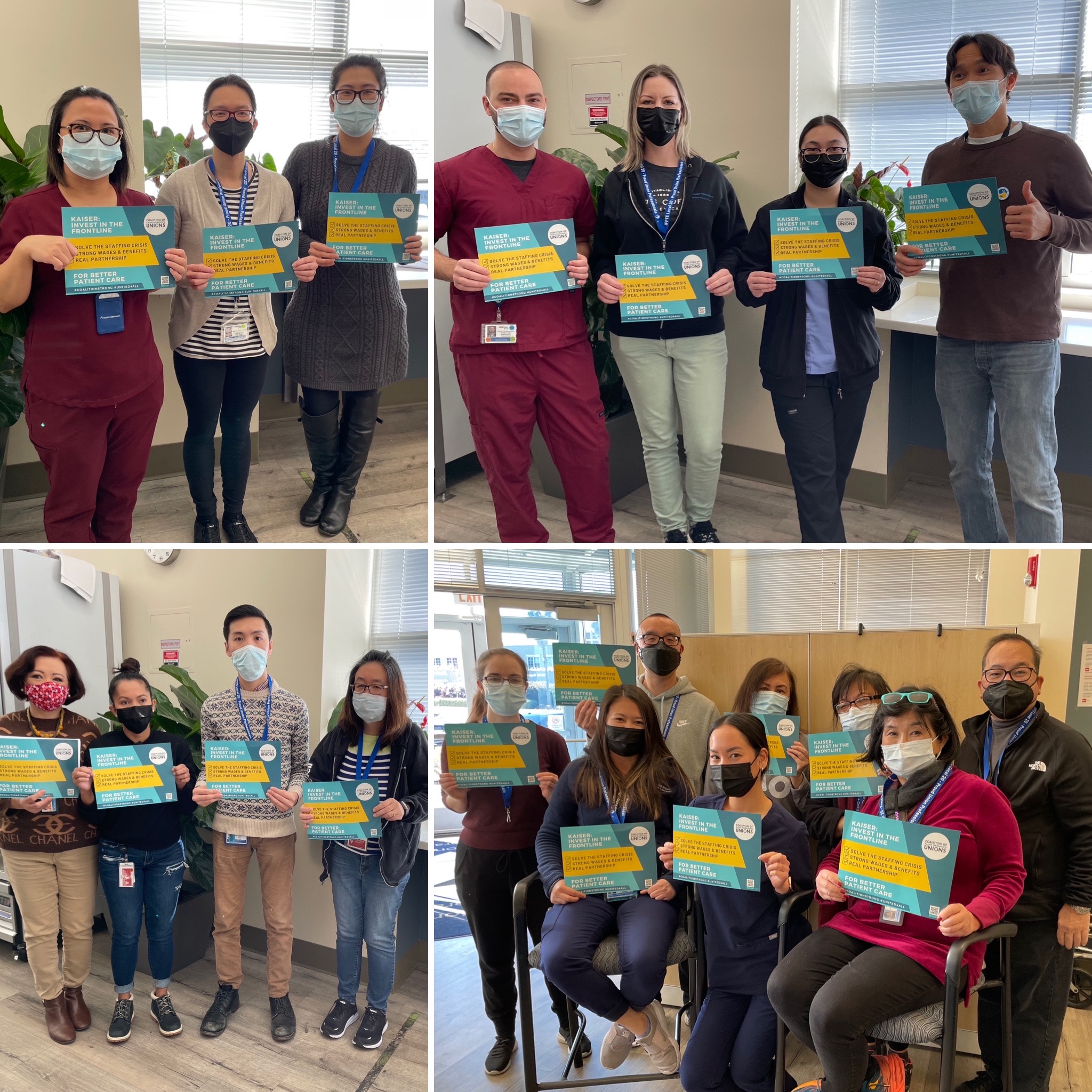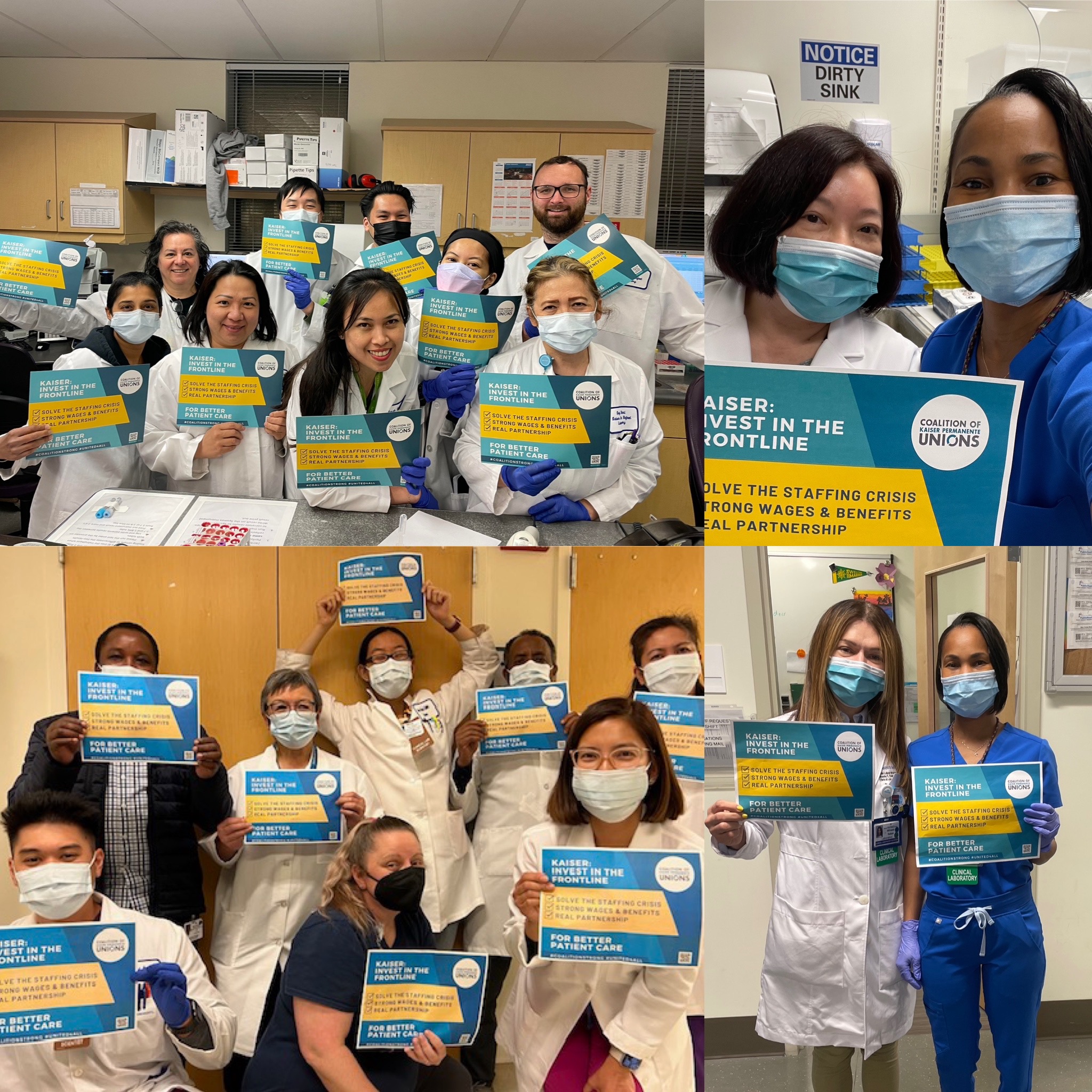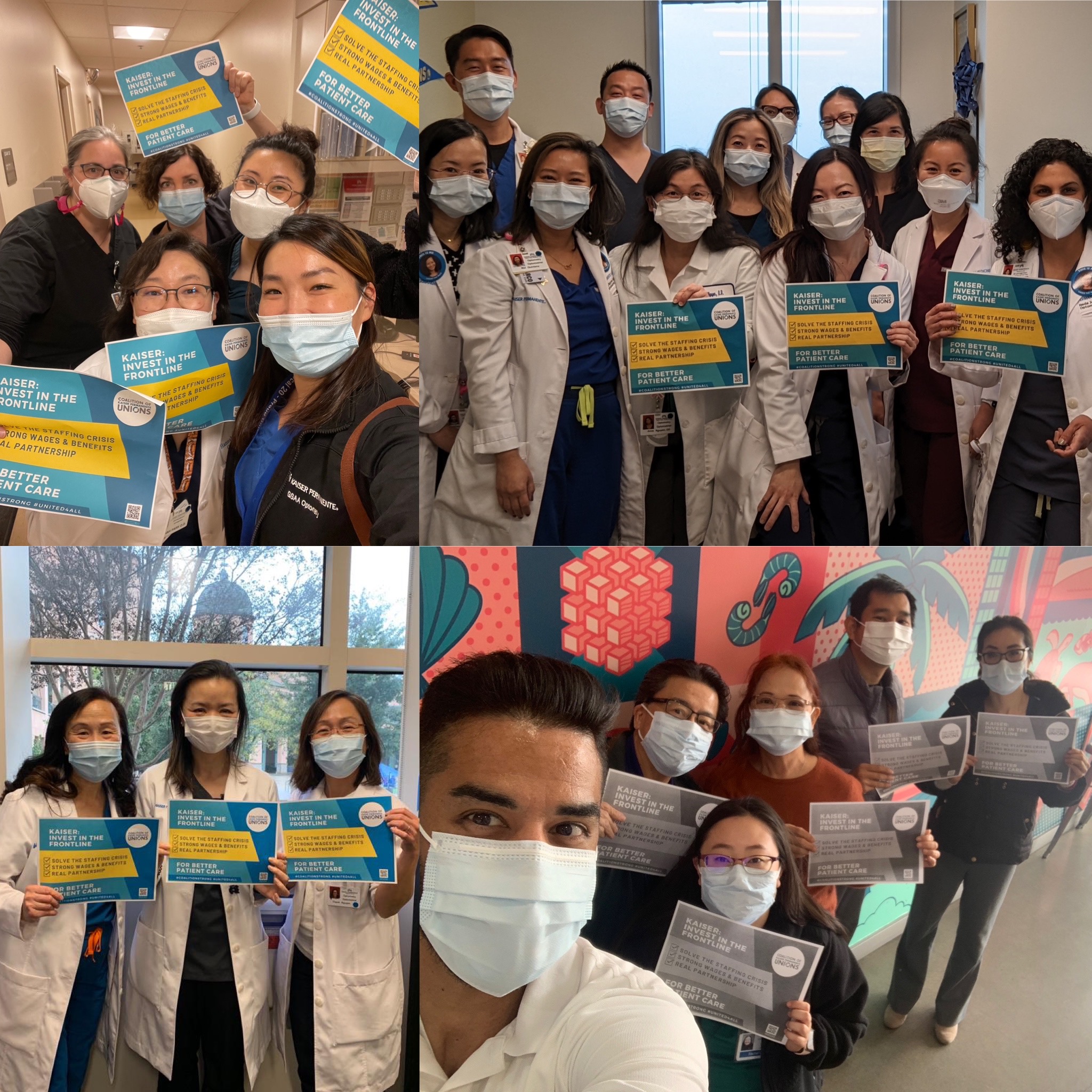 In the past 18 months, the last 4 rounds of negotiations between KP and non-coalition unions have resulted in strike notices or strikes. Last month, a majority of Coalition union members signed our Open Letter calling on KP to use the upcoming negotiations to solve the staffing crisis and we delivered them to KP management. No surprise, KP's response was practically non-existent; no real commitment given or action was taken Nationwide, 11 of the top 20 spenders on temporary contract laborers were California Kaiser Permanente Thrive hospitals. That’s hundreds of millions of dollars that could have been spent investing in their permanent workforce!